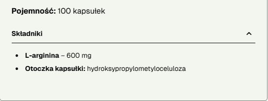 - 600 mg czystej L-argininy w kapsułce – odpowiednia dawka aminokwasu w wygodnej formie