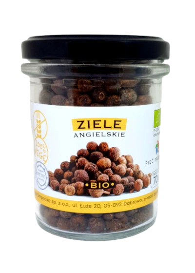 Odkryj głębię smaku zamkniętą w owocach korzennika lekarskiego. Ziele Angielskie BIO marki Pięć Przemian to najwyższej jakości przyprawa pochodząca z certyfikowanych upraw ekologicznych. Choć jego nazwa sugeruje Europę, ziele angielskie wywodzi się z Ameryki Południowej i jest cenione za swój unikalny profil aromatyczny, łączący nuty goździków, cynamonu, gałki muszkatołowej i pieprzu. Jako produkt całkowicie bezglutenowy, gwarantuje bezpieczeństwo osobom z nietolerancjami, eliminując ryzyko zanieczyszczeń krzyżowych, tak powszechnych w masowej produkcji przypraw.
